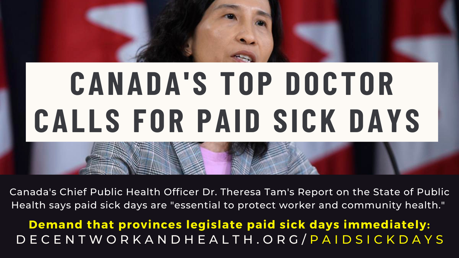 As Dr. Tam wrote, “Only 42% of working Canadians who are older than 18 years reported having access to paid sick leave. Without paid sick leave, employees may lose income if they become ill and are unable to work. Without employment security, they may lose their jobs if they stay home when sick. In either case, and particularly if they are economically insecure, workers may feel unable to comply with public health guidance to stay home when sick…Paid sick leave is also essential to protect worker and community health.”